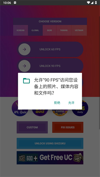 通过本站下载安装后,首先需要选择【GLOBAL】(全球模式)和【UNLOCK90FPS】(解锁90帧)这两个核心功能选项。软件界面设计简洁明了,即使是初次使用的用户也能快速上手。在操作过程中,系统会弹出权限请求窗口,用户只需按照提示完成授权即可。对于Android11及以上系统的用户,软件还提供了详细的权限设置引导,确保各项功能都能正常启用。整个设置过程仅需几分钟,完成后即可立即享受更流畅的游戏体验。