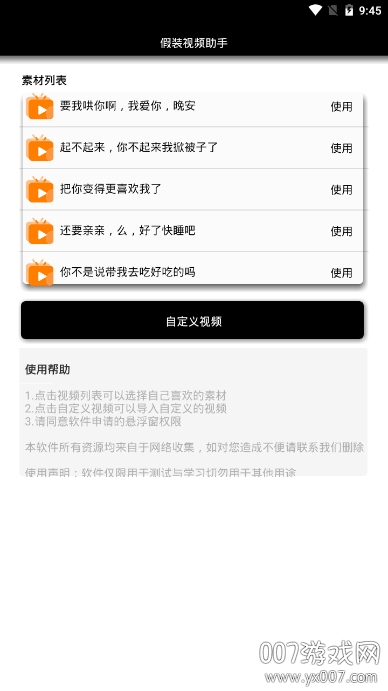 这款软件操作简单便捷,三步即可开启你的"甜蜜恋爱"体验。首先在视频列表中选择系统提供的精美素材,这里有各种风格的虚拟女友视频片段;如果你想要更个性化的体验,可以点击自定义视频功能导入自己准备的视频素材;为了确保视频通话效果逼真,请务必允许软件申请的悬浮窗权限,这样就能在微信等社交平台上完美呈现"恋爱中"的状态。