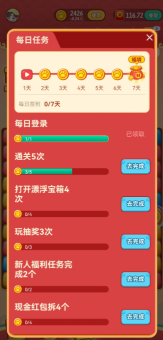 招财进宝喵红包版玩法