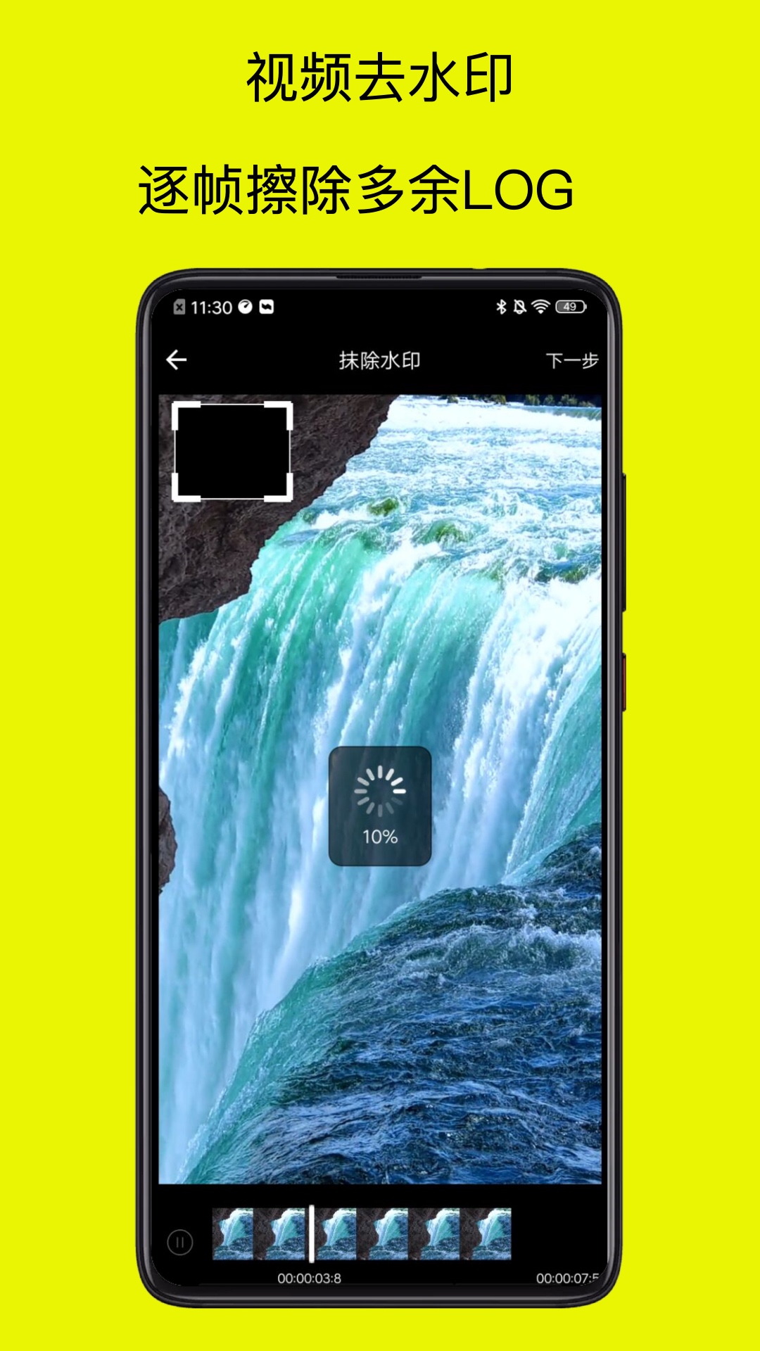 去除水印:点击"去除水印"后,软件会显示处理进度条和预计剩余时间。处理过程中用户可以暂停或取消任务,系统会自动保存当前进度,方便后续继续操作。