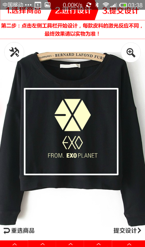自定义设计:提供20000+矢量素材和100+字体库,支持图层混合、渐变填充等专业功能,可精确到毫米级的细节调整。款式选择:涵盖18大类200余种版型,从修身款到oversize应有尽有,所有衣物均采用环保有机棉材质。实时预览:搭载光线追踪技术模拟不同场景下的穿着效果,支持生成动态GIF展示图。快速购买:接入智能供应链系统,支持尺码AI推荐和7天无理由退换服务。社交分享:内置设计师社区,可参与每周创意挑战赛,优秀作品有机会获得品牌联名量产。
