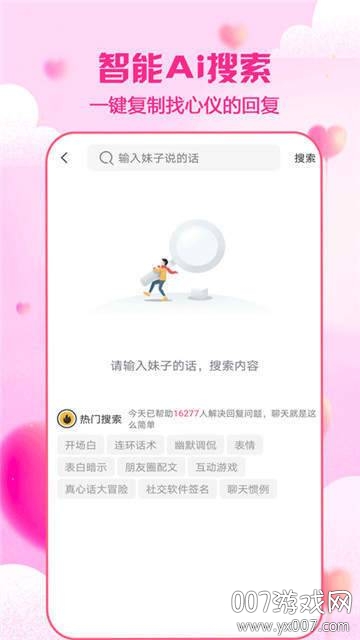 cp神器免费版是一款专为恋爱交友打造的智能聊天辅助软件,它集恋爱技巧、话术模板、情感测试于一体,致力于帮助用户提升沟通能力,快速建立情感连接。这款软件拥有海量精选内容,每日持续更新,无论是初次相识的破冰话题,还是增进感情的甜蜜对话,都能在这里找到合适的表达方式,让用户轻松掌握聊天主动权。