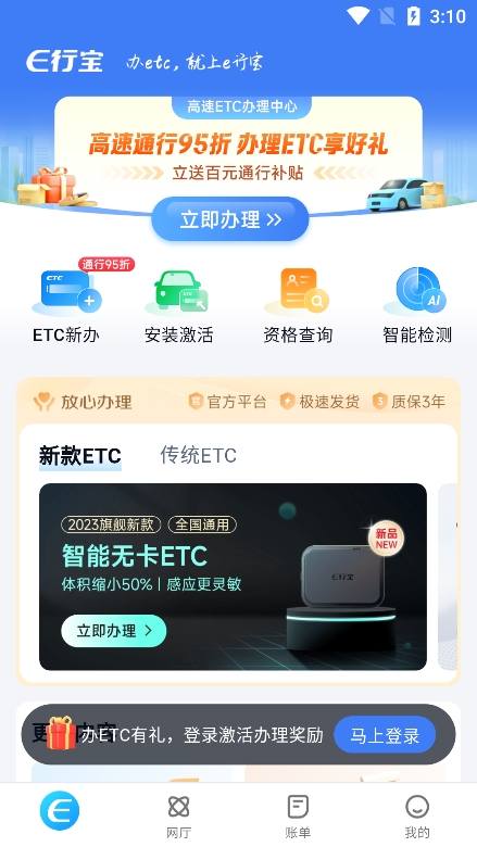 ETC一站式服务:在线申办、便捷查账24小时售后贴心守护,让您随时随地享受高效服务。无论是ETC办理还是账单查询,都能一键搞定。