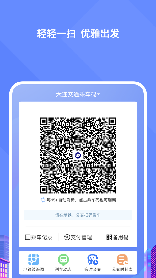 【智能刷码乘车】创新性的二维码支付系统让您告别传统购票方式,只需打开app扫描乘车码,即可快速通过地铁闸机和公交刷卡机,大大节省排队等候时间。