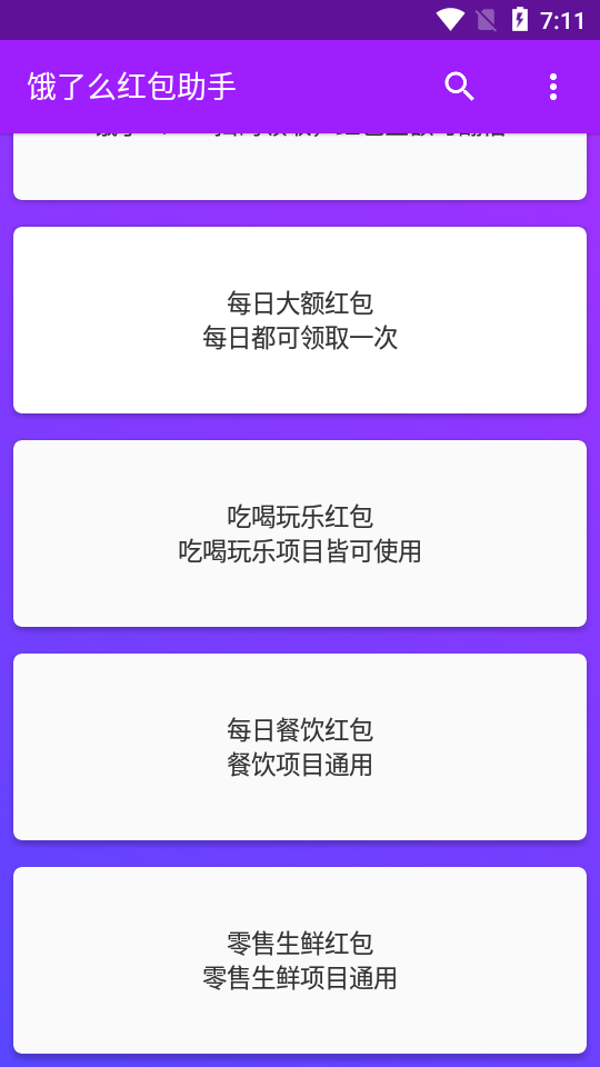 饿了么红包助手是一款专为外卖用户打造的优惠福利工具,让您轻松享受点餐折扣。这款应用汇集了饿了么平台最新、最全的红包资源,包含餐饮、生鲜、商超等多种优惠类型,每日更新确保用户总能获得新鲜优惠。通过智能推送和便捷的领取方式,用户只需简单操作就能将各类红包收入囊中,在点外卖时直接抵扣现金。无论是上班族、学生党,还是居家生活,这款红包助手都能为您的外卖消费带来实实在在的优惠,让每一笔订单都更划算。