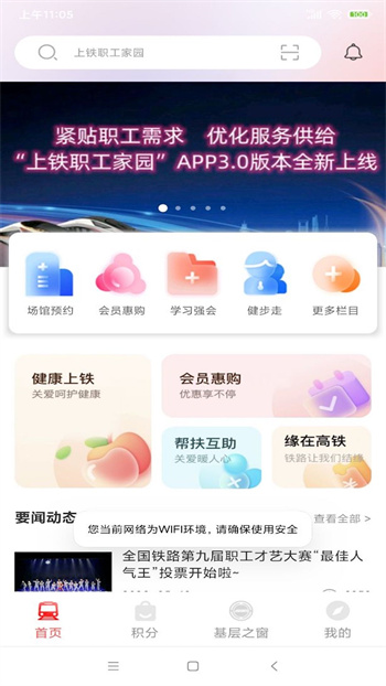 下载并安装上铁职工家园,打开并进入主界面,首次使用会有详细的新手引导;