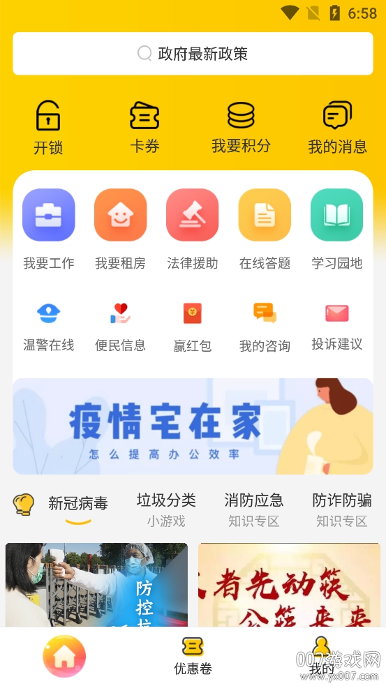 我要工作,我要租房,法律援助,在线,学习园地,温警在线,便民信息。这些核心功能模块都经过优化设计,比如"我要工作"板块整合了本地优质企业资源,提供智能职位匹配;"法律援助"则与专业律所合作,确保咨询质量。