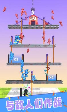 不断的冲锋:你需要控制你的小蓝人进行不断的冲锋,占领敌人的塔,掠夺人口以加强你的部队,最后到达终点就能获胜。游戏节奏明快,操作简单易上手,但想要精通需要掌握精准的时机判断。每次成功的冲锋都能带来巨大的成就感。