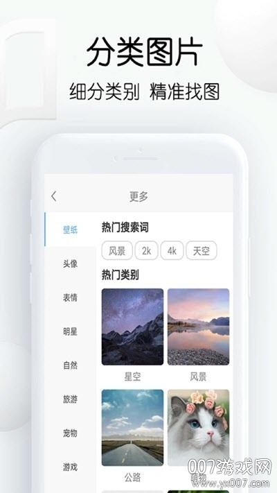 软件的主要功能包括:智能图片搜索,支持以图搜图和关键词搜索两种模式;海量图片库,收录超过千万张优质图片资源;精细分类系统,将图片按类型、风格、主题等多维度划分;每日精选推荐,由专业编辑挑选的优质内容;热门排行榜,展示当前最受欢迎的图片资源。此外,软件还支持多平台同步,用户可以在手机、平板、电脑等多个设备上无缝使用。所有功能都经过精心优化,确保在不同网络环境下都能流畅运行。