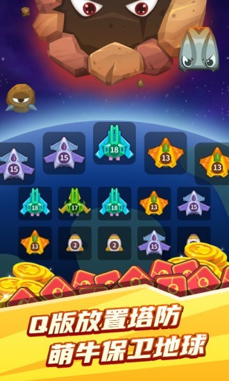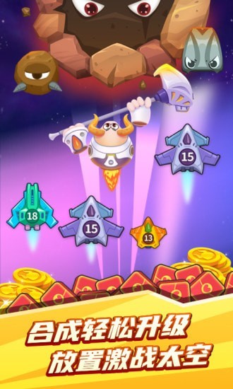 游戏采用极简操作设计,通过拖拽合并的合成玩法带来持续的新鲜感,每次升级都可能解锁意想不到的强力战舰。色彩明快的卡通场景中,数十种造型各异的战舰等待收集,从萌萌的初级矿车到炫酷的星际母舰,每款都配有独特的防御特效。精心手绘的动态背景会随着关卡推进变换主题,从地心矿洞到太空陨石带,搭配轻松的背景音乐,让合成过程充满视觉享受。独创的挂机合成机制让玩家即使离线也能持续获得收益。