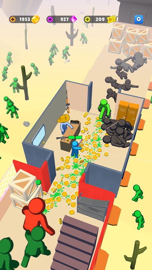 为了增加生存几率,可以通过收集资源来升级列车防御系统和武器装备。游戏采用渐进式难度设计,随着关卡推进,获得的资源可以用于建造更坚固的防御工事。僵尸群具有破坏特性,会优先攻击薄弱环节,因此必须合理分配建设资源!