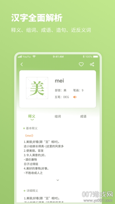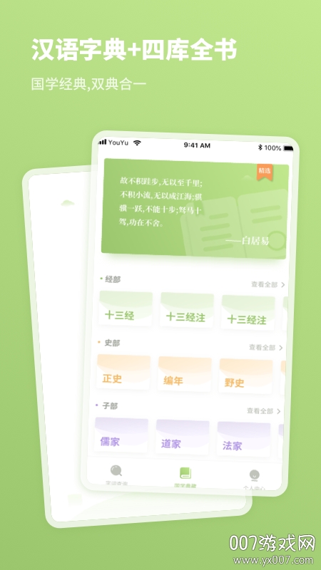 2020汉语字典手机专业版是目前市场上收录最全、查询最快、功能最丰富的汉语字典应用。它不仅包含常规的拼音、笔画、部首、结构、笔顺等基础查询功能,还整合了汉语词典、成语词典、组词造句等实用工具,堪称中文学习的全能助手。软件特别收录了大量国学经典,包括《周易》、《诗经》、《左传》、《论语》等经部著作,《史记》、《资治通鉴》等史部典籍,《庄子》、《孟子》等子部名篇,以及《楚辞》、《乐府诗集》、《唐诗三百首》等集部佳作。通过这部移动百科全书,用户可以随时随地领略国学魅力,传承中华文化精髓。