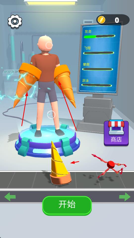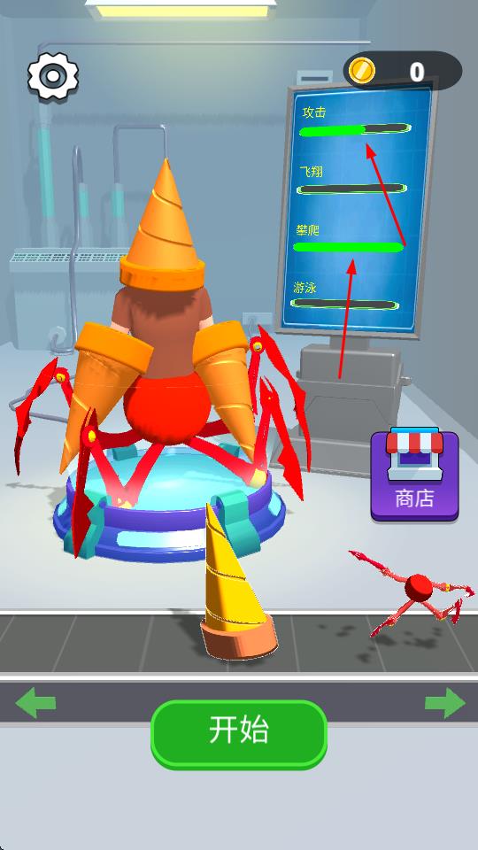 玩家在初始界面可以为角色装备各种机械部件,通过商店购买或完成游戏内任务来提升角色的攻击力、速度等关键属性。合理搭配不同功能的部件是制胜的关键,建议新手优先提升移动能力。