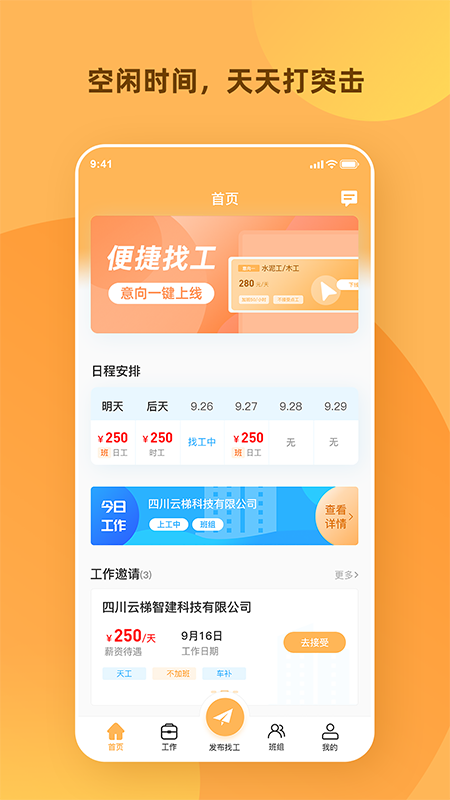 平台建立全方位保障体系:工资预付功能确保下工即结,让劳动者权益得到充分保护;闲时状态功能帮助用户灵活安排工作时间,实现工作生活平衡;严格的招工认证流程确保每个岗位真实可靠,杜绝虚假招聘;7×24小时客服支持随时解决使用过程中的各类问题。这些贴心设计让天天打突击成为最值得信赖的灵活就业平台。