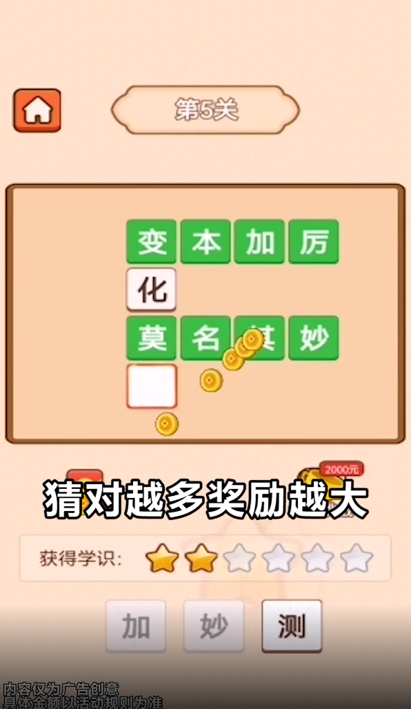 游戏设有数百个精心设计的关卡,通关即可获得相应红包奖励。题库会定期更新,保持游戏的新鲜感和挑战性。除了现金奖励外,完成特定成就还能获得额外金币和道具。系统会记录玩家的学习进度和正确率,通过数据分析推荐适合的练习内容,让您在娱乐中不断提升成语水平,实现知识变现的双重收获。