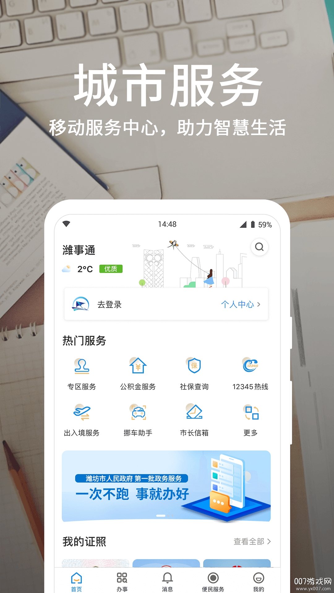 潍事通政务咨询版是一款功能强大、服务全面的手机政务服务平台,致力于为用户提供便捷高效的线上办事体验。该软件整合了潍坊市各类政务服务和便民功能,让市民足不出户就能完成证件办理、费用缴纳、信息查询等日常事务,真正实现"让数据多跑路,让群众少跑腿"的理念。