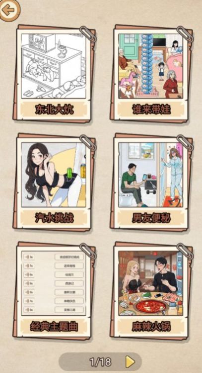 在这个充满烟火气的火锅关卡中,玩家需要帮助角色完成一顿特别的火锅大餐。首先将冰箱里的矿泉水拖拽给餐桌旁的男子,接着用冰箱的冰块为他降温,再把西瓜也交给他解渴。注意观察场景细节:将女孩面前的果汁、桌上的牛奶依次递给男子。关键步骤是上滑女孩衣服的拉链,将水壶里的水倒入锅中,放入勺子开始搅拌。最后别忘了下滑男子的拉链,把冻豆腐投入锅中,点击桌上的小洞获取隐藏道具,使用手机拍照记录这顿特别的火锅,最后将韭菜交给男子完成关卡。