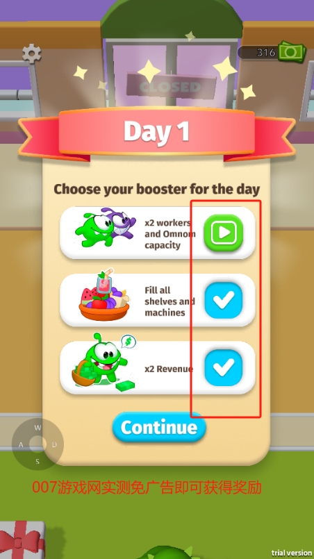 游戏的操作简单直观,即使是新手也能快速上手。玩家可以通过点击和拖拽等操作来管理超市的各个区域。特别值得一提的是,游戏提供了便捷的广告跳过功能,玩家可以直接获得奖励而无需观看广告。此外,游戏中还设有独特的金币机制,在某些情况下,使用金币不仅不会减少你的资产,反而会让你的金币数量增加,这种反常规的设计为游戏增添了更多趣味性。