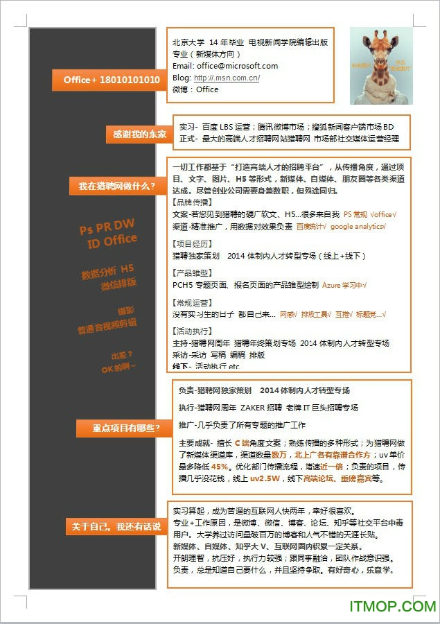 互联网简历,智能分类,运营,产品经理,房地产,财务会计,人力资源,市场销售等简历应有尽有,每周更新最新行业模板