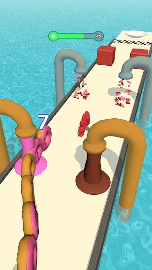 甜甜圈冲冲冲是一款充满趣味与挑战的休闲跑酷游戏,玩家将操控可爱的甜甜圈在赛道上展开一场欢乐的冒险。游戏采用清新明亮的卡通风格,画面色彩鲜艳,角色设计呆萌可爱,为玩家带来轻松愉悦的视觉体验。在游戏中,你需要灵活操控甜甜圈,避开道路上随机出现的各种障碍物和陷阱,同时还要尽可能多地收集散落在赛道上的甜甜圈,每收集一个甜甜圈就能让你的队伍增加一员。随着游戏的进行,你的甜甜圈军团会越来越庞大,最终以更强大的阵容冲向终点。
