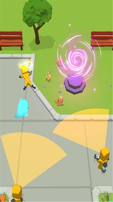 玩家操控蓝色幽灵角色,躲避黄色抓捕者的追捕,利用场景特点摆脱抓捕者的视野范围和攻击。仔细观察守卫的巡逻路线和视野盲区,选择最佳时机快速移动,避免被守卫发现。同时要留意场景中可互动的元素,这些都可能成为逃脱的关键。