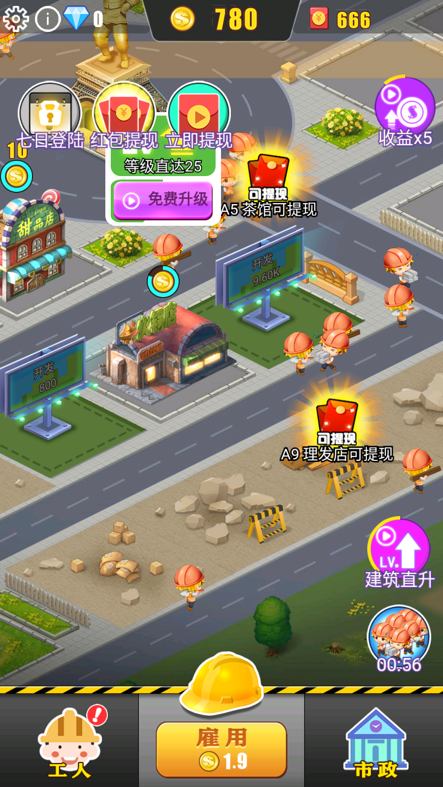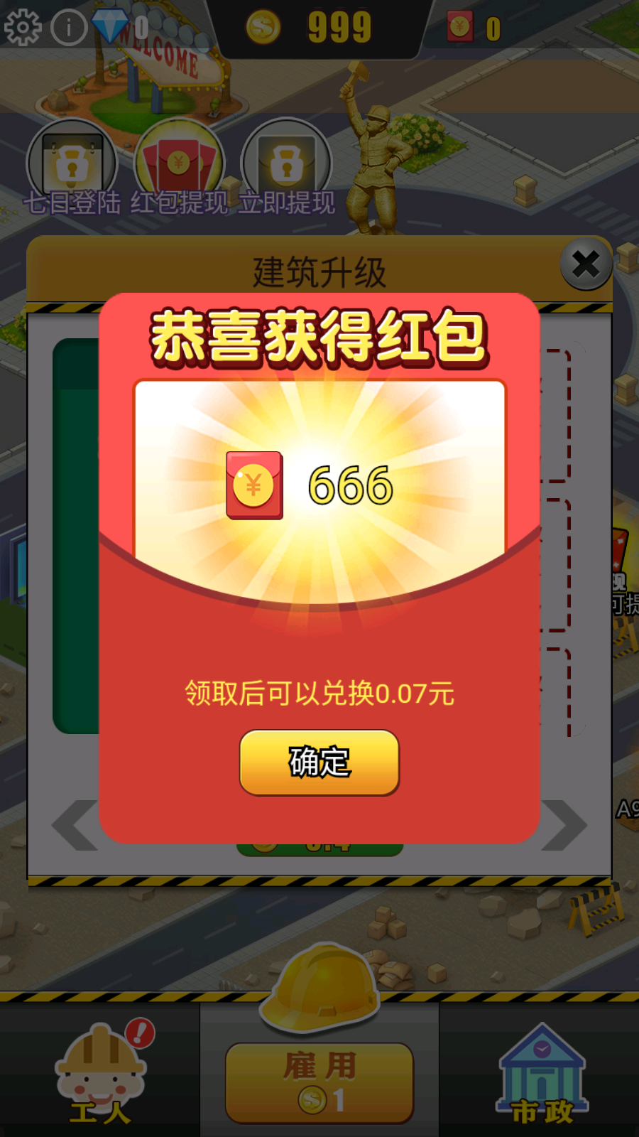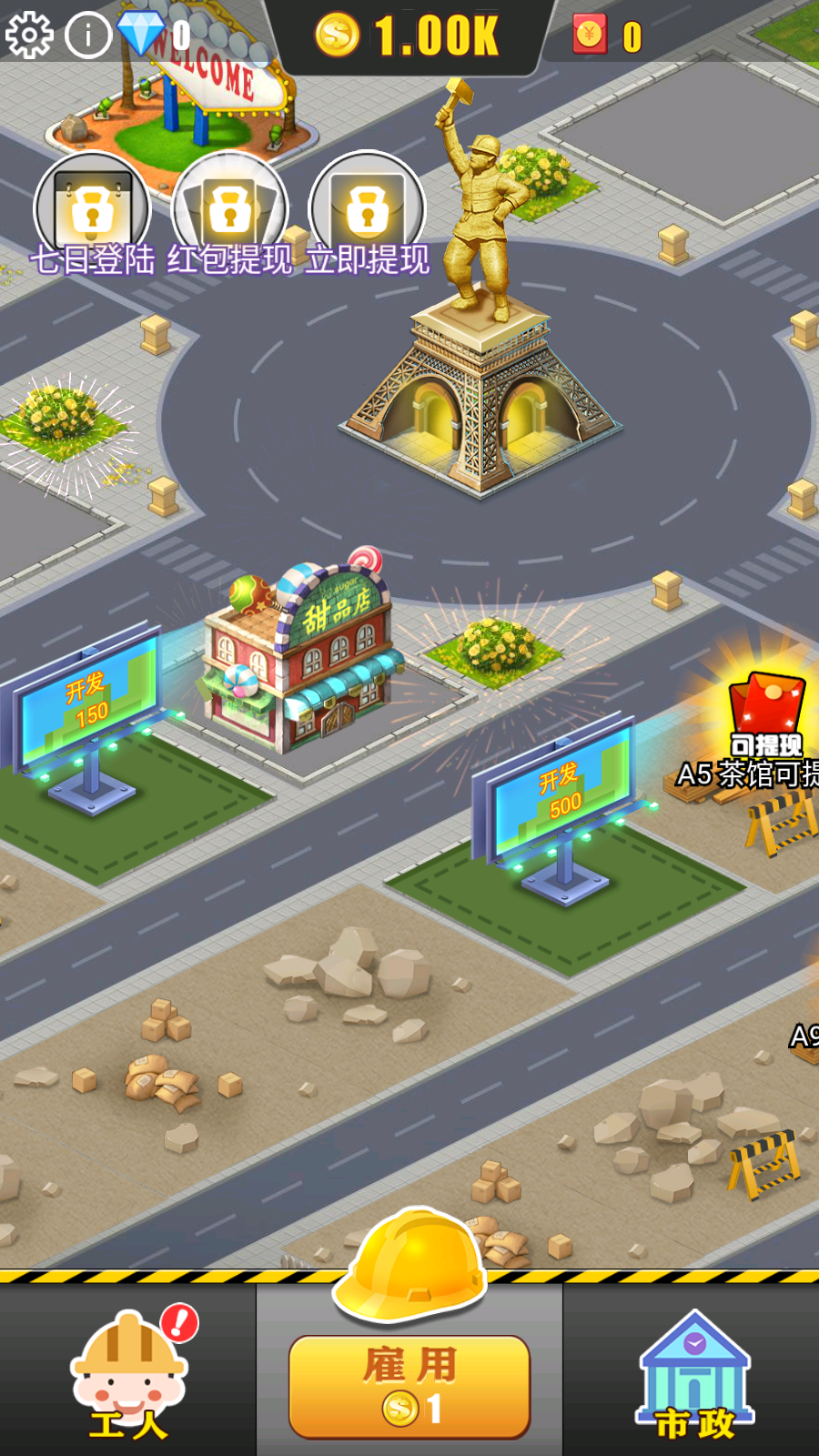《宝藏小镇》是一款轻松有趣的模拟经营类游戏,玩家将化身小镇建造者,通过雇佣工人、开设店铺来打造繁荣商业街。游戏采用低门槛高回报的玩法设计,无论是建造升级还是参与活动都能获得红包奖励,所有收益均可通过微信实时提现。独特的离线收益机制让玩家即使关闭游戏也能持续积累财富,配合转盘抽奖、每日登录等多样化的红包获取方式,让休闲娱乐与真实收益完美结合。