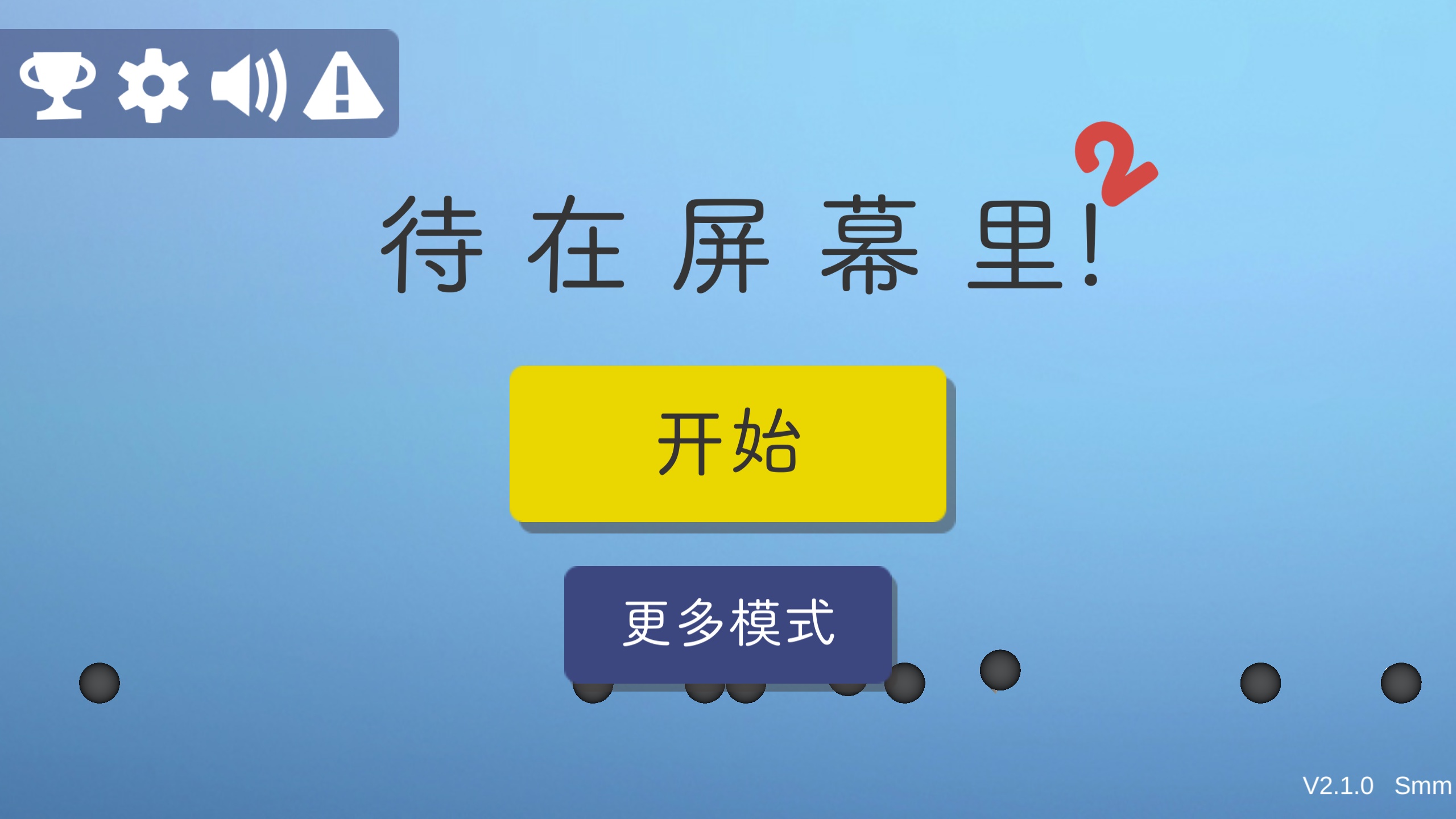 《待在屏幕里2》是一款充满挑战性的休闲益智游戏,玩家需要通过灵活的操作让小球始终保持在屏幕内,避开各种障碍物并顺利到达终点。游戏看似简单,但想要持续玩下去却需要极强的反应能力和耐心。这款游戏以其独特的玩法和虐心的难度吸引了大量玩家,成为休闲游戏中的一匹黑马。