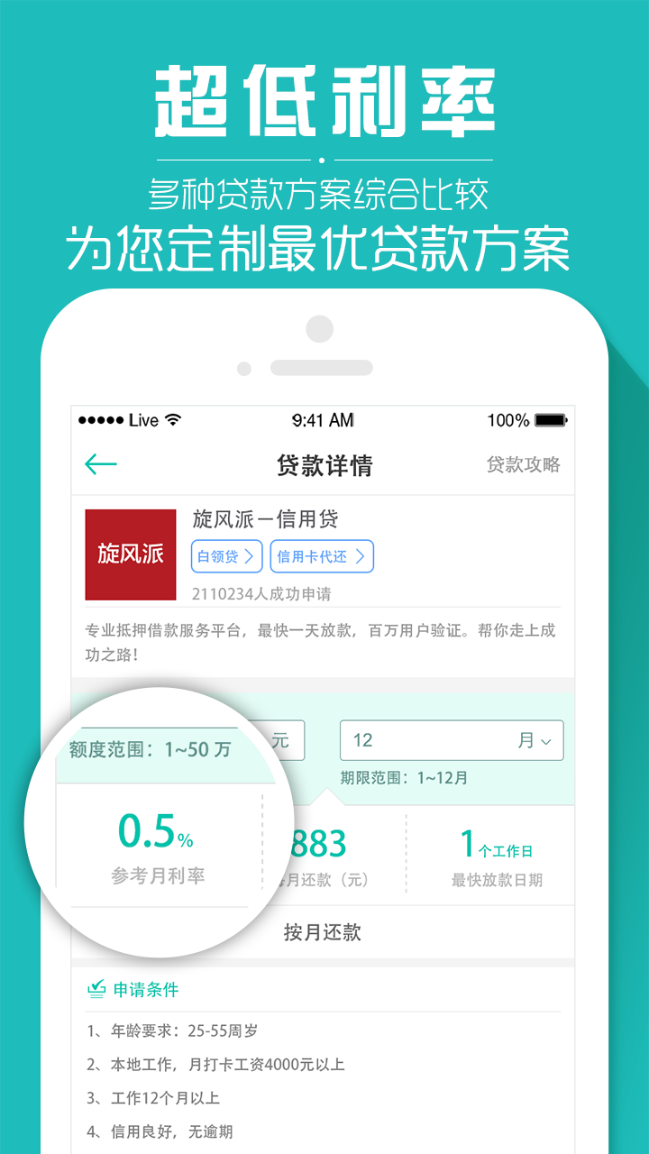 放款快:采用智能审批系统,最快1分钟完成贷款申请,大幅提升资金获取效率。费率低:通过大数据分析比较上千家金融机构的贷款产品,为用户推荐最优利率方案。额度高:提供从几千元到50万元不等的贷款额度,满足不同层次的资金需求。零手续费:平台承诺不收取任何中介费用,所有贷款服务完全免费。操作简单:用户只需通过手机填写基本资料,无需繁琐的材料准备和线下奔波,真正实现足不出户轻松贷款。