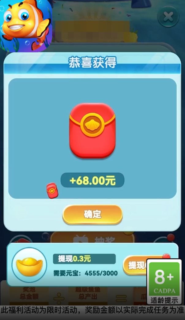 这款游戏最吸引人的地方在于它的真实可靠性。很多玩家分享说,自从玩了《鱼鱼保卫战》,连零花钱都不用向家人要了。游戏承诺无任何隐藏套路,所有红包奖励都是真实可提现的,而且没有提现次数限制。玩家只要参与游戏就能获得红包,0.3元起提的设定让小额收益也能快速到账。不少玩家表示后悔没有早点知道这款游戏,现在通过手机玩游戏就能赚钱,既打发时间又能获得收益,实在是一举两得。