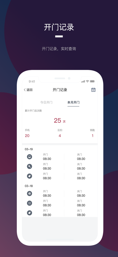 开门记录,实时:详细记录每次开锁操作的时间、方式和操作者,支持历史记录查询和导出。