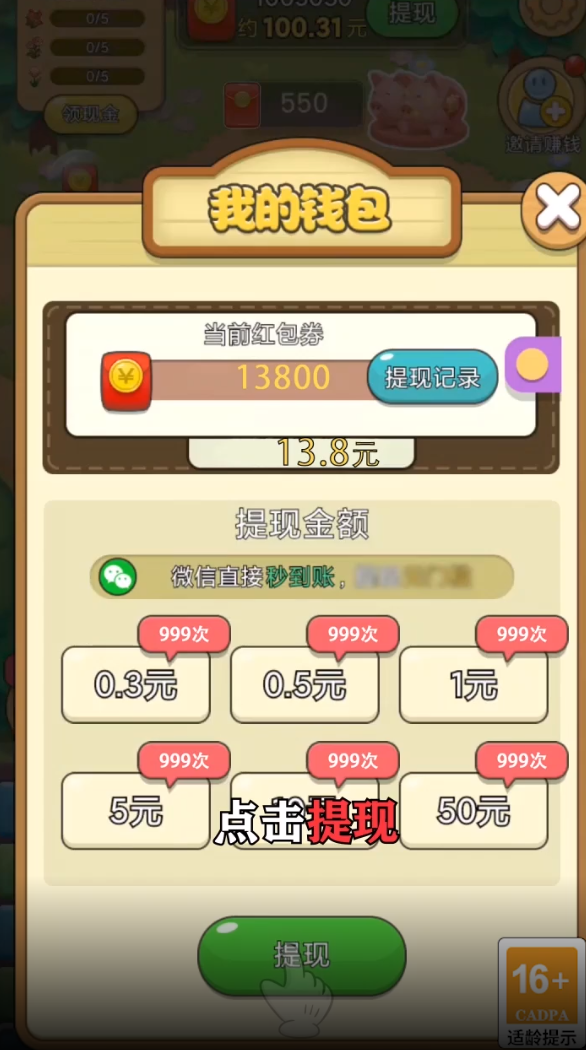 游戏设有阶梯式奖励机制:消除10个方块得1个红包,消除20个方块得2个红包,奖励实时到账绝无延迟。提现门槛低至0.3元,真正做到小钱也能提。官方特别承诺:白天畅玩游戏,晚上安心提现,超大现金红包等你来拿。更有每日任务系统,完成指定目标可获得额外奖励,让赚钱变得更简单有趣。