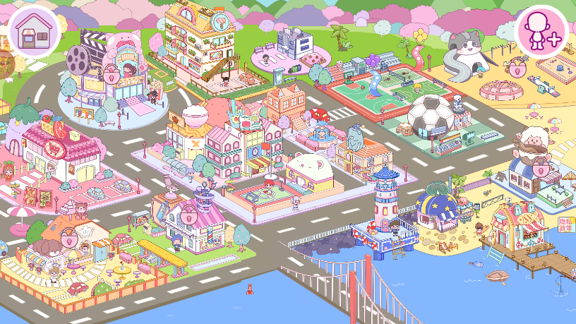 游戏提供了数十种风格迥异的卡通角色形象,从可爱的动物造型到时尚的人类角色,满足不同玩家的审美需求。房屋装修系统极具深度,你可以从地基开始打造梦想之家,选择各种主题风格的家具和装饰品。服饰系统同样丰富多彩,季节限定时装、特殊活动套装等不断更新,让你时刻保持新鲜感。多张精心设计的地图场景,从阳光海滩到雪山小镇,每个区域都有独特的风景和玩法等待探索。