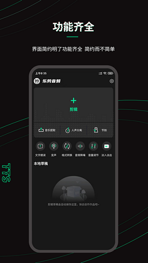 乐剪音频app提供了丰富多样的音频处理功能,满足不同用户的各种需求。文字转语音功能支持将输入的文字转换成多种音色,包括温柔男声、标准女声、知心女声、磁性男声等,还能模拟不同地区的方言和英语发音。专业的剪辑功能支持精确到0.1秒的音乐编辑,包括合并、混音、分割等操作,让您轻松玩转手机铃声和音乐制作。音频淡入淡出编辑效果可以让您的作品更加自然流畅。多种音频格式转换功能让您可以在不同格式间自由切换。音乐提取功能可以将视频中的音频单独保存为手机铃声。音频降噪功能能有效减少环境噪音的干扰,让人声更加清晰纯净。人声分离功能可以将背景音乐和人声完美分离,让您能够单独处理不同的音轨。此外,app还内置了一个钢琴模拟器,让您可以直接在手机上弹奏乐曲。