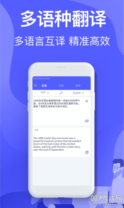 智慧翻译app多语种版是一款功能强大、操作便捷的在线翻译工具,能够为用户提供高效精准的多语言互译服务。无论是工作、学习还是旅行,这款软件都能帮助您轻松解决语言沟通障碍。它支持实时语音翻译、文本翻译、文档翻译以及图片识别翻译等多种功能,让您在不同场景下都能快速获取所需的翻译结果。