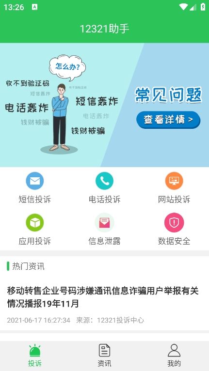 点击资讯,可以查看各类官方资讯,公告和政策;栏目包含最新网络安全法规解读、典型投诉案例分析等实用内容,帮助用户了解最新监管动态,每周还会更新防诈骗指南等科普知识。