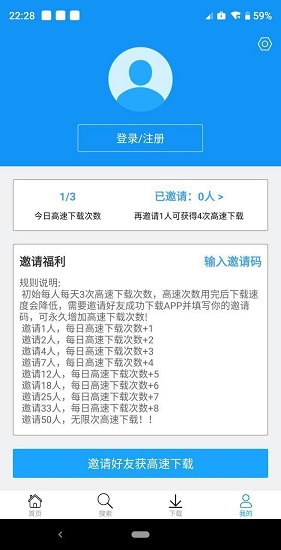 邀请4人,每日高速下载次数+3