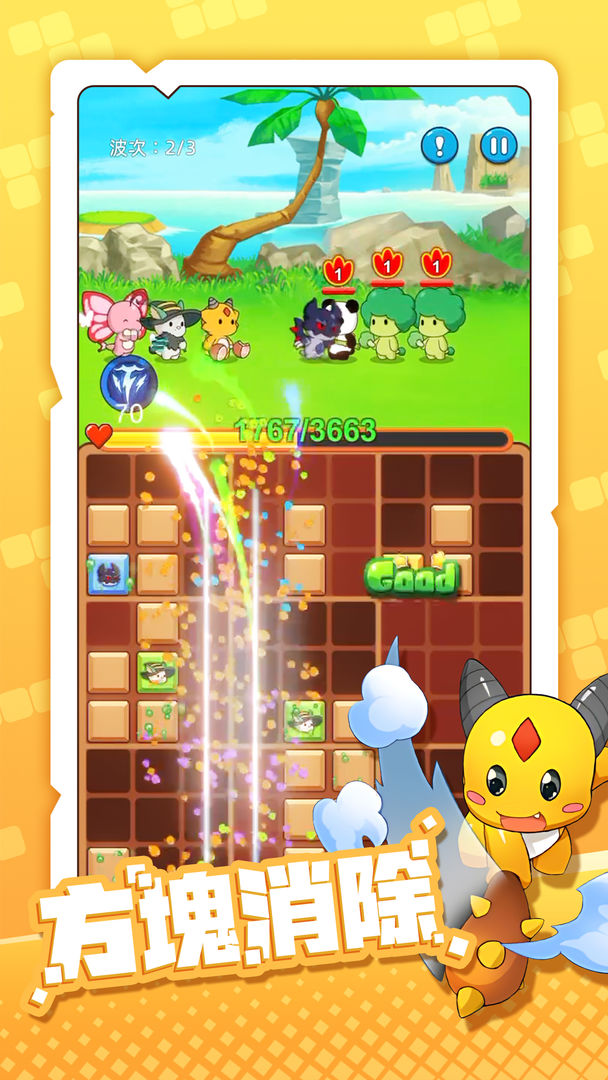 方块精灵将经典的消除玩法与成长元素完美结合,打造出一款既轻松又有深度的益智游戏。它不再是简单的无脑摆块游戏,而是需要玩家充分发挥优秀的布局能力和精准的伤害计算。游戏中的每一关都设计巧妙,玩家需要仔细思考每一步的消除策略,才能顺利通关。随着关卡的推进,游戏的难度也会逐渐提升,带来更多挑战与乐趣。