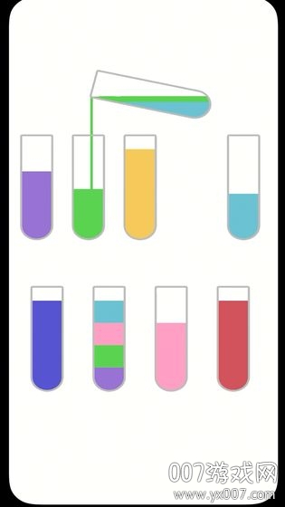 游戏的核心玩法是让玩家将不同颜色的液体进行精确分类,需要特别注意每种液体的倒入量。每个试管都有特定的容量限制,过度倒入会导致液体溢出,影响通关进程。玩家可以自由选择将不同位置的液体混合在一起,但必须确保最终能完美分离所有颜色。游戏设计了丰富的关卡挑战,当玩家成功将所有液体分类完毕后,就能获得满满的成就感。这种循序渐进的设计让游戏既具有挑战性又不会过于困难。