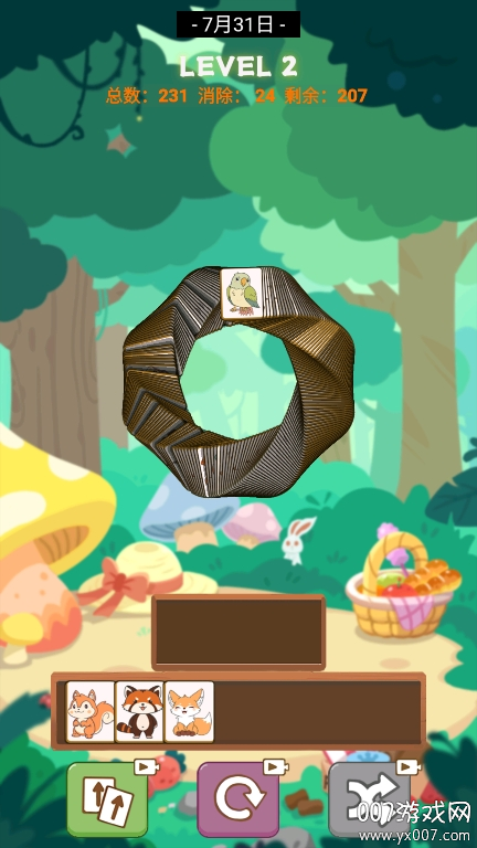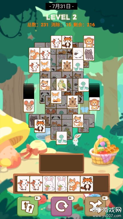 泰迪熊消消乐是一款充满趣味性的休闲消除类手游,游戏玩法简单易上手但又不失挑战性。在游戏中,玩家需要通过点击屏幕中的动物卡牌,将它们放入游戏下方的暂存区。当三个或更多相同类型的动物卡牌连在一起时,就会自动消除并获得相应分数。游戏的核心玩法在于合理规划消除策略,特别要注意不能让卡槽全部放满,否则游戏就会结束。为了帮助玩家更好地通关,游戏内还贴心地提供了多种实用道具,如增加暂存区容量、重置游戏布局、交换动物位置等,这些道具都能在关键时刻助你一臂之力。