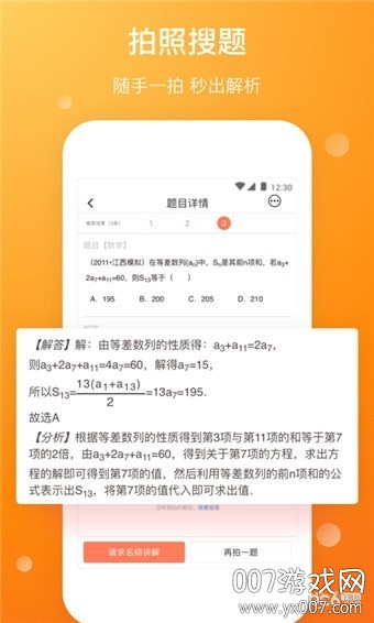 搜题:随手一拍,秒出解析。采用AI智能识别技术,0.5秒内即可返回精准答案和详细解题步骤。