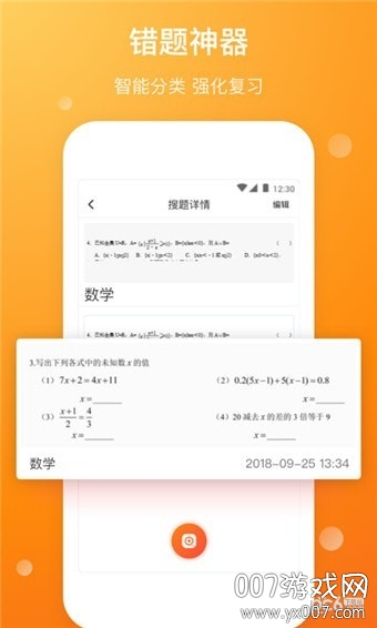 错题神器:智能分类,强化。自动将错题按学科、知识点分类,生成专属错题本,定期推送相似题型巩固练习。