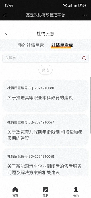 社情民意模块:支持委员在线提交社情民意信息,实时跟踪处理进度,确保群众诉求高效传达。