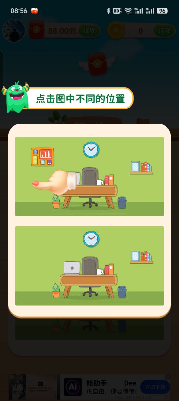 找茬强者(com.hdcf.monhet)是一款集休闲娱乐与红包奖励于一体的趣味找茬游戏。游戏采用经典的找茬玩法,玩家需要在两幅看似相同的图片中找出细微差异,通过观察力和反应力完成挑战。游戏界面简洁明了,操作简单易上手,适合各个年龄段的玩家体验。除了传统的找茬模式外,游戏还融入了丰富的红包奖励机制,让玩家在享受游戏乐趣的同时还能获得实实在在的现金收益。