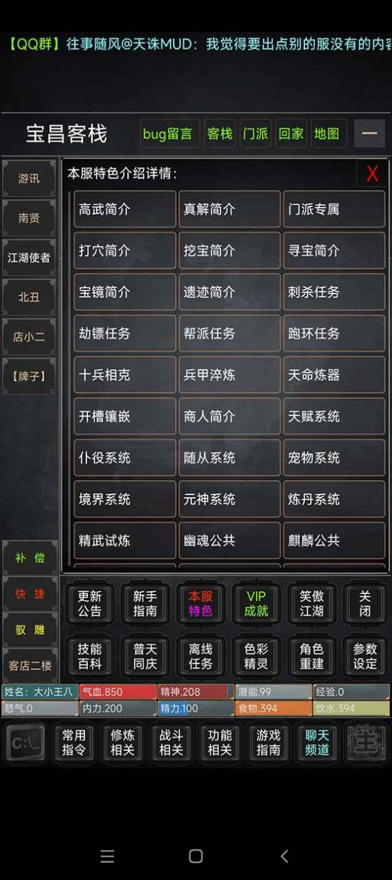 沉浸式的文字修真世界,玩家可以自由交流心得,组建修真联盟;每个门派都有独特的传承功法和专属技能,玩家可以根据自身喜好选择加入;野外探险充满惊喜,随机事件层出不穷,让每次外出历练都充满期待;完善的社交系统支持玩家结交道友,组建队伍共同探索秘境,挑战强大妖兽;丰富的日常任务和限时活动,保证游戏体验常玩常新。