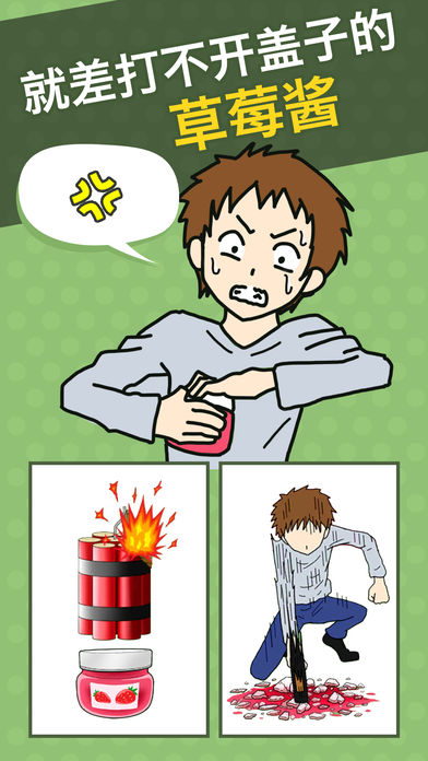 这是一款魔性十足的闯关类游戏,游戏操作简单易上手,游戏玩法趣味好玩。游戏中玩家玩法利用各种方法打开草莓酱瓶子,玩家想想要吃配上草莓酱的烤面包,但是却无法打开草莓酱瓶子。超丰富的游戏关卡,各式各样的探索场景,各种搞笑魔性的开盖方式,利用各种道具打开瓶子,完成关卡任务。游戏适合所有年龄段的玩家,既能锻炼思维能力,又能获得纯粹的快乐。随着游戏进展,玩家将解锁成就和特殊服装,为主角打造个性化造型,增加游戏的可玩性和收集乐趣。
