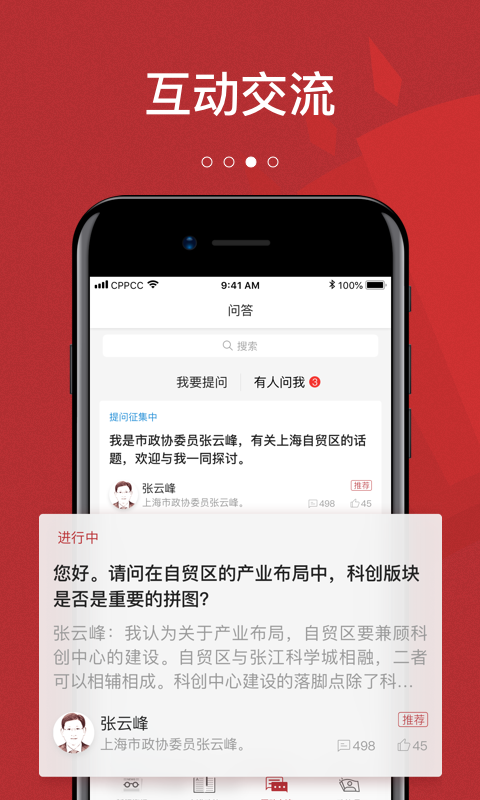 关注社会热点问题,方便用户和委员、政协机构、界别等直通交流互动。平台搭建了完善的在线沟通渠道,支持文字、语音、视频等多种交流方式,用户可以随时向政协委员提问,就关心的话题发表意见,实现真正的参政议政。政协委员也会定期在线答疑,形成良性互动。