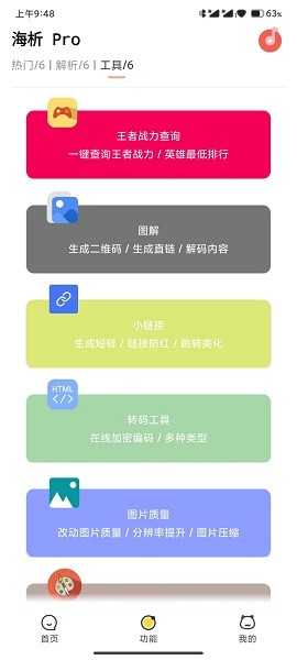 海析pro目前提供三大核心功能模块:热门推荐、视频解析和实用工具。在热门推荐栏目中,用户可以浏览当前最热门的短视频内容;视频解析是软件的核心功能,支持多种格式的视频解析下载;实用工具则提供了更多辅助功能。未来版本还将持续更新,加入更多实用功能。作为一款以解析功能为主的工具箱,海析pro不仅能解析短视频,还支持音乐、图片等多种资源的解析下载。软件安装包体积小,安装速度快,所有功能都可以免费使用,没有任何隐藏收费。