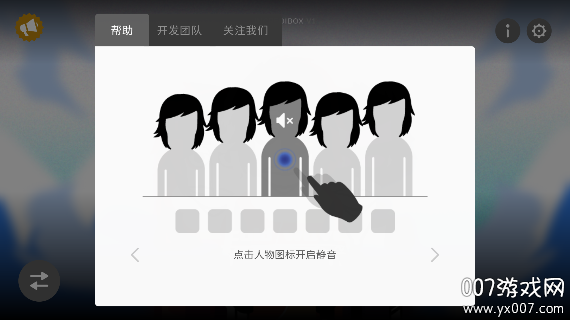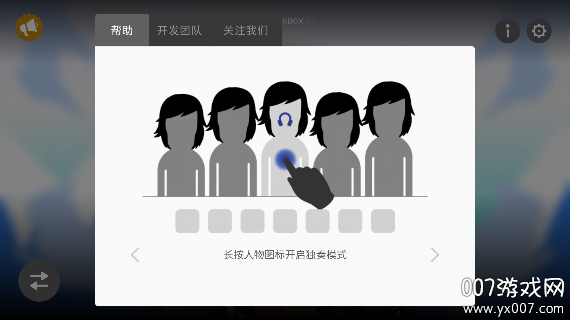 首先打开游戏V5模组,进入主页面后,玩家可以点击右上角的感叹号图标查看详细的操作指南。游戏的核心玩法是通过拖拽人物图标来创作音乐:向下拖动人物图标可以停止当前音效,点击人物图标则能开启静音模式,而长按图标则会进入独奏模式,让玩家专注于单个角色的音乐表现。此外,游戏还支持多种语言切换,满足不同地区玩家的需求。通过这些简单直观的操作,玩家可以轻松地创作出复杂的音乐作品,体验音乐制作的乐趣。