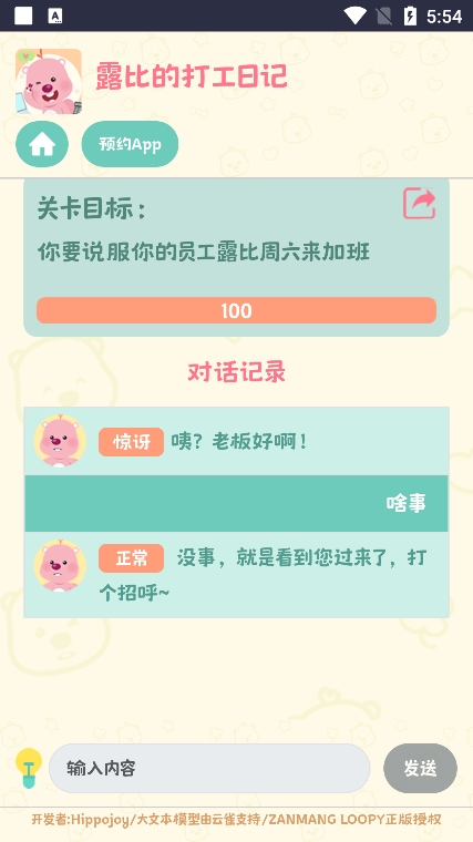 《露比的打工日记》是一款以可爱AI角色露比为核心的模拟经营游戏。游戏中玩家将扮演露比的职场导师,通过互动对话帮助她应对各种工作挑战。游戏采用清新治愈的日系画风,设计了丰富的职场场景和剧情分支,玩家需要密切关注露比的情绪状态和抵抗值变化,通过合理选择对话选项来引导她的职业发展。游戏还包含多种隐藏剧情和特殊结局等待玩家探索,让玩家在轻松愉快的氛围中体验经营养成和角色扮演的双重乐趣。