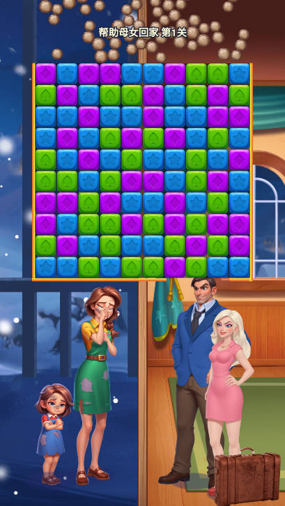 然后帮助母女回家。在游戏初期关卡中,玩家需要熟悉如何通过消除方块来移动石块,完成简单的救援任务。